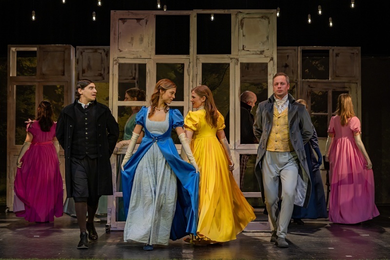 A darab látványvilága is különleges, a díszlet gurulós ajtó- és ablakkeretekből épül fel, és jelenetről jelenetre változik a színpadkép. A mozgó falak megteremtik Jane Austen vidéki Angliájának varázslatát. „A darab egy civil szituációval indul. Megérkezik a társulat próbálni, de csupán jelzés díszletben. Ebben partner volt Tihanyi Ildi díszlet- és jelmeztervező, mert nagy kihívásnak érezte, hogy hogy fogjuk megteremteni a regényben szereplő rengeteg helyszínt. Mániám szinte, hogy egy-egy gesztus sokszor többet ér, mint a monumentális változások. Nem illúziót teremtünk az előadásban, hanem játékosságot. Egyik jelenetből úszunk át a másikba azáltal, hogy a díszletek mozognak, mintha forgószínpaddal dolgoznánk. Bodor Johanna koreográfus nagy segítségemre volt a díszletmozgások megtervezésében is hogy a darab helyszínváltozásait és szerkezetét elegánsan és a dramaturgiát szolgálva rakjuk össze.”